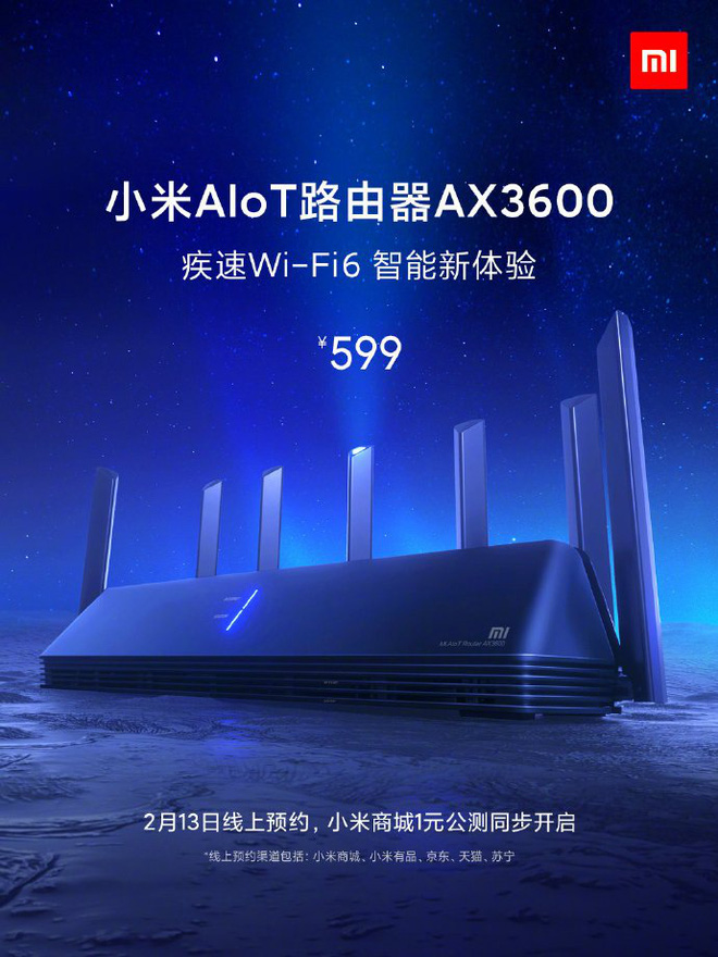 Mi AIoT Router AX3600 hỗ trợ giao thức bảo mật WPA3 và IPv6, được trang bị 4 cổng ethernet ở mặt sau và đi kèm adapter 12V 2A. Hiện tại, mẫu router này đang được mở đặt hàng trước trên website chính thức của Xiaomi, có giá bán lẻ 599 NDT (khoảng 1.99 triệu đồng) nhưng chưa rõ thời điểm lên kệ.